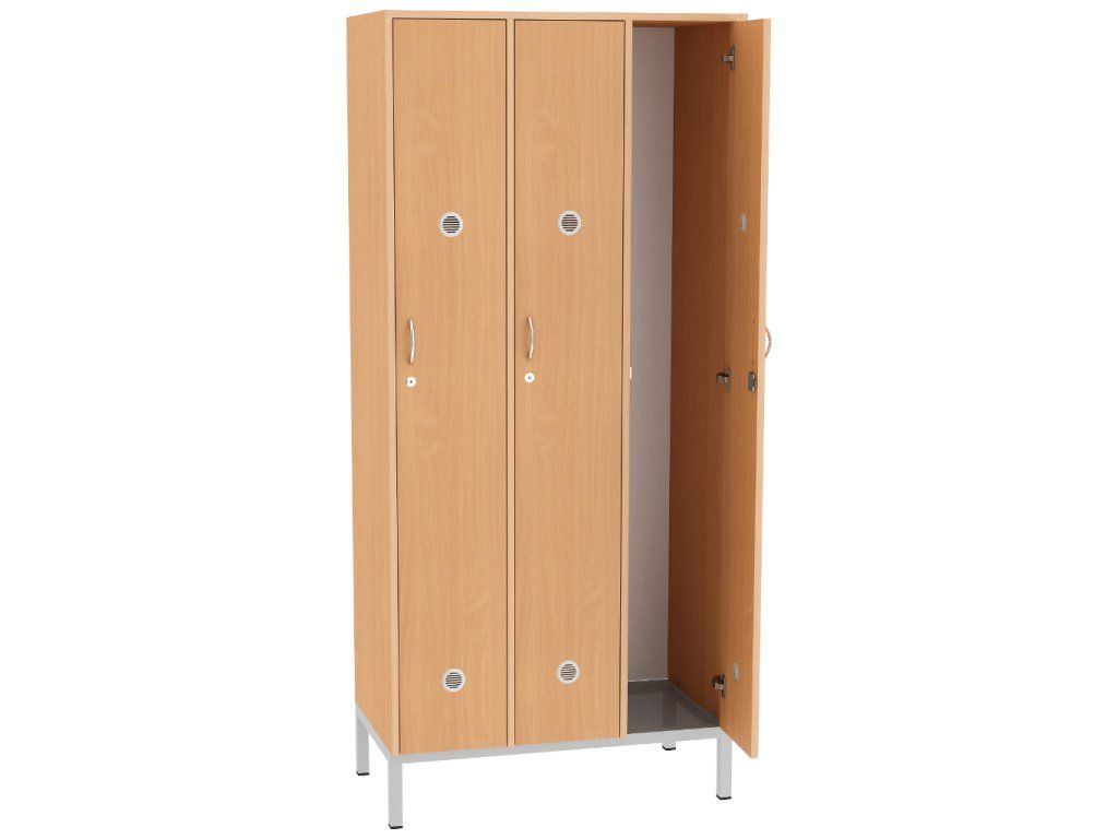 Šatní skříň třídveřová s kovovou podnoží pro školní šatny