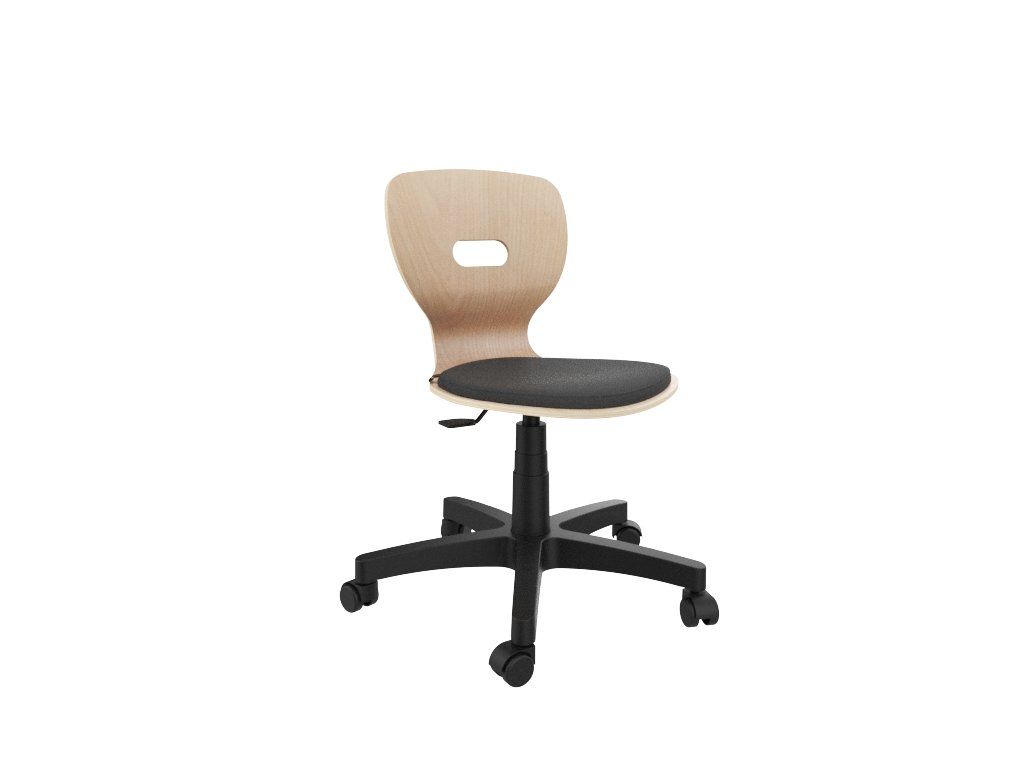 Sedací část je doplněna čalouněným segmentem, který zvyšuje pohodlí při dlouhodobém sezení. Ergonomické 3D tvarování podporuje správné držení těla a přispívá k odlehčení bederní oblasti zad. Horní hrana opěradla obsahuje integrovaný úchop pro snadnou manipulaci.