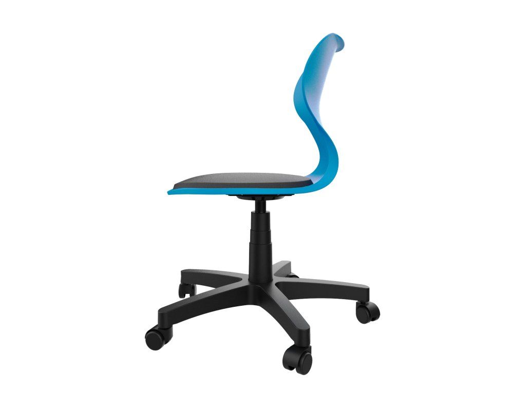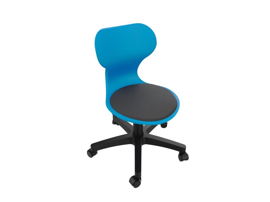 Výška sedáku se nastavuje pomocí plynového pístu, díky kterému lze židli rychle přizpůsobit individuálním potřebám. Otočný mechanismus zvyšuje volnost pohybu a přispívá k pohodlnému používání ve třídách, laboratořích i odborných učebnách.