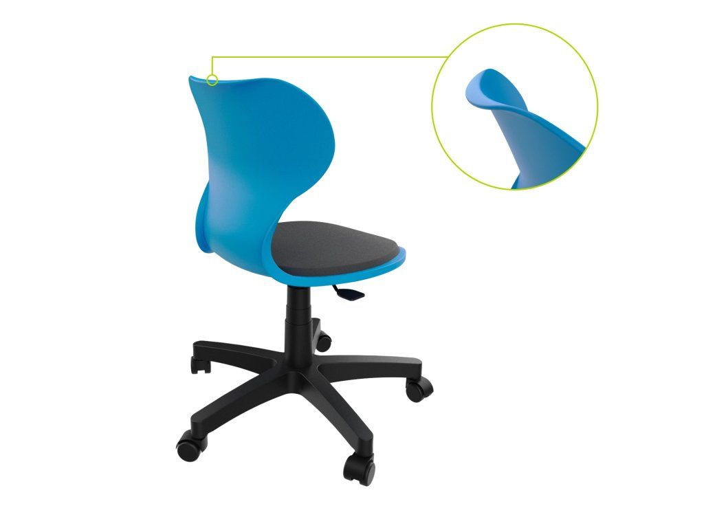 Židle je navržena pro vyučující i odborné učebny, kde je kladen důraz na komfort při dlouhodobém sezení a flexibilitu při práci. Otočné provedení spolu s možností výškového nastavení umožňuje snadné přizpůsobení různým uživatelům i pracovním situacím.